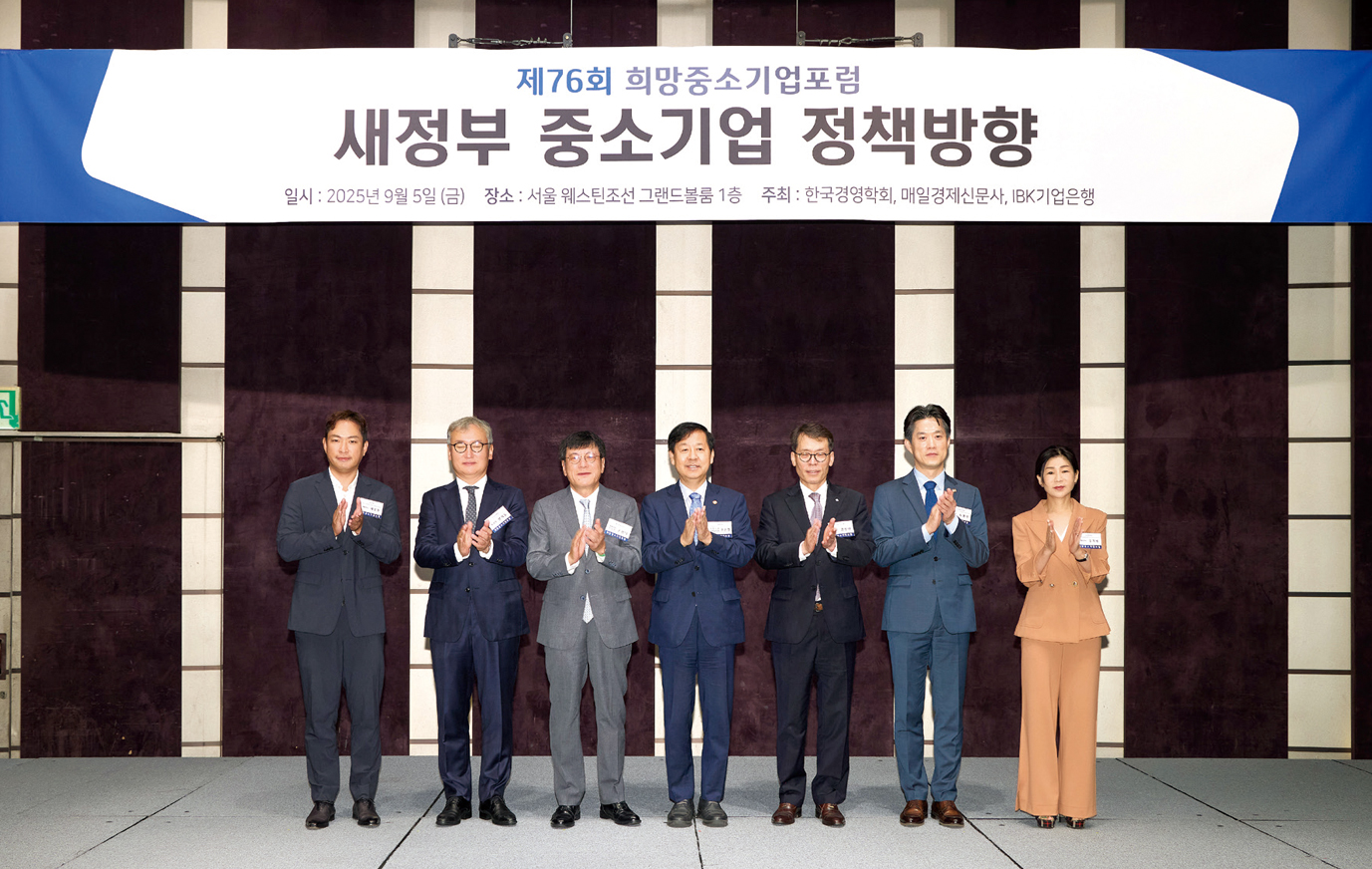 희망중소기업포럼은 2006년 시작된 이후 우리나라 중소기업 정책의 흐름을 점검하고 미래 전략을 모색하는 대표적 토론의 장으로 자리매김해왔다. 특히 경제계와 학계, 정부가 한자리에 모여 시대적 과제를 공유한다는 점에서 의미가 크다. 지난 9월 5일 오전 7시, 조선 웨스틴호텔 그랜드볼룸홀에서 열린 제76회 포럼 역시 IBK기업은행, 매일경제신문, 한국경영학회가 공동으로 주최해 정책적 무게감을 더했다.