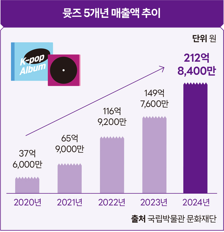 팬덤 소비가 가진 힘은 수치로도 확인할 수 있다. 국립박물관 문화재단에 의하면 뮷즈 연간 매출액은 2020년 38억 원에서 2022년에 117억 원, 2023년에는 149억 원으로 증가했다. 여기에는 한 가지 흥미로운 사실이 있다. 2020년 뮷즈에 대한 관심을 촉발한 인물이 바로 BTS의 리더 RM이다. 그가 당시 국립중앙박물관의 반가사유상 전시와 더불어 제작된 미니어처를 구매했다는 사실이 알려지면서 뮷즈가 MZ세대들에게 ‘힙한’ 아이템으로 떠올랐기 때문이다. 이후에도 이 반가사유상 미니어처는 나영석 PD가 만든 <서진이네-멕시코 편>에 테이블 오브제로 등장해 세계인들의 관심을 받았다. 스타와 연결된 팬덤들의 관심은 그대로 소비로 연결돼 몇 년 사이에 3배가 훌쩍 넘는 매출액 증가로 이어진 것이다. K팝의 인기와 더불어 관련 굿즈 시장들과 팝업스토어들이 생겨난 것도 팬덤 소비의 영향이다. 여의도 더 현대 백화점의 경우 K팝 아이돌의 팝업스토어가 상설로 열리면서 해외 팬들의 성지로 떠올랐다.