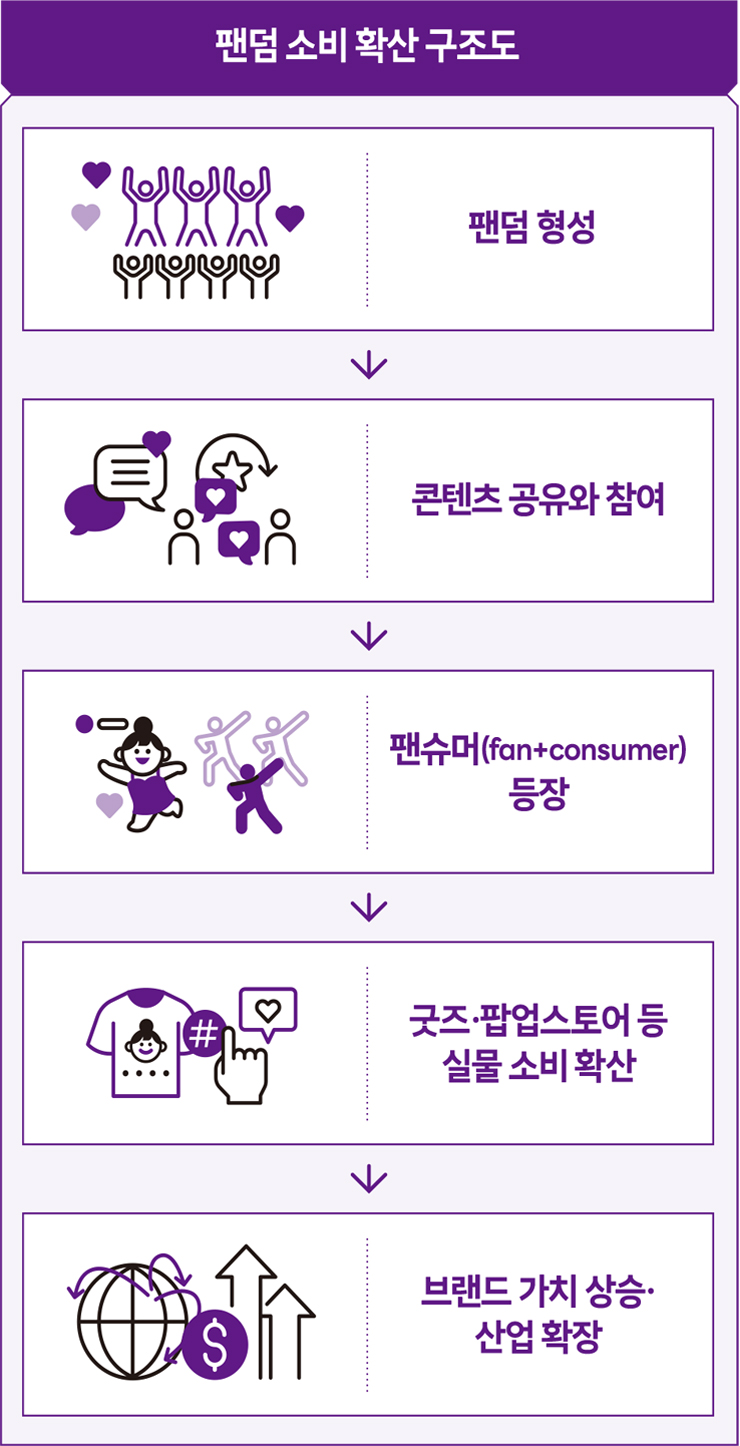 자, 그렇다면 이 팬슈머의 등장이 기업에 시사하는 건 뭘까. 결국 팬슈머는 같은 소비자다. 이들은 콘텐츠를 덕질하는 존재지만 또한 일상적인 소비를 하는 이들이기도 하다. 그러니 팬슈머로서의 소비 방식은 어디에서나 적용된다. 기업의 상품 구매도 이제는 ‘덕질’이 된다. 얼마나 마음을 잡아끌고, 취향을 저격하고, 나아가 소비자를 팬으로 만드는 참여와 동반성장을 경험하게 하는가가 성패를 가르지 않겠는가. 기업의 성패를 가르는 건 그래서 이제 팬덤의 유무가 되는 시대에 들어왔다.