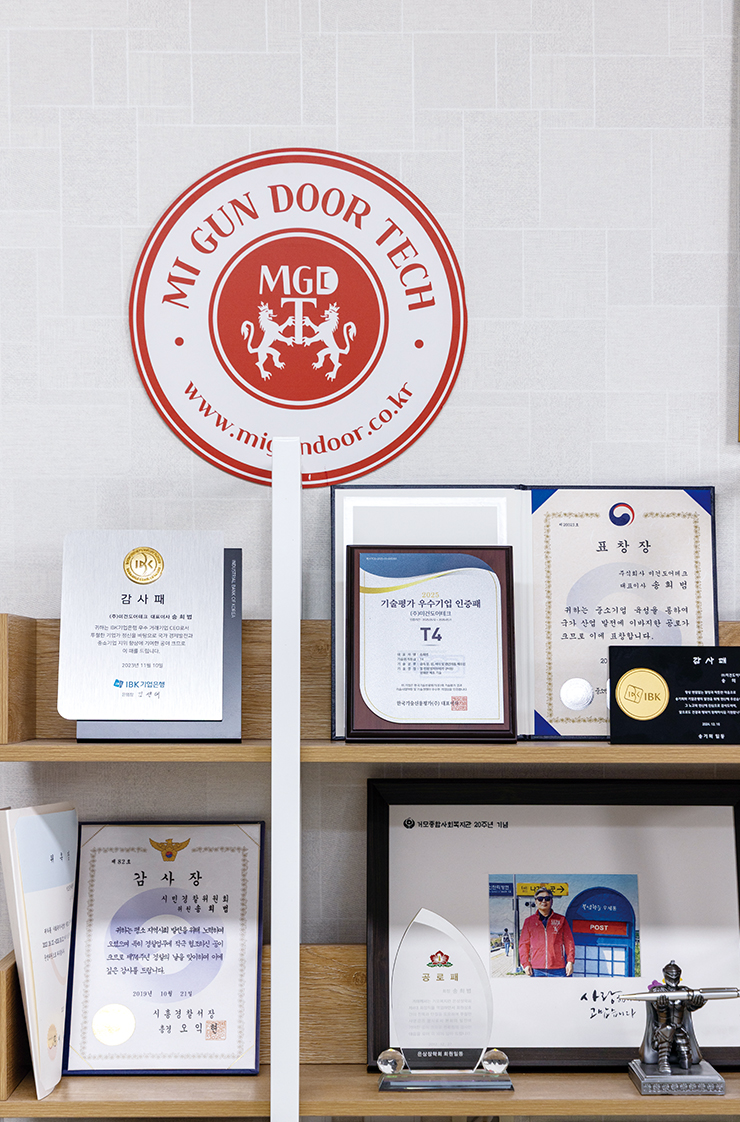 창업 초기 ㈜미건도어테크의 행보는 쉽지 않았다. 생산 설비와 연구 인력, 유통망 등 모든 것을 스스로 구축해야 했다. 하지만 송희범 대표는 기술과 신뢰만큼은 타협하지 않았다. 그는 수십 차례의 실패 끝에 방화 성능과 디자인을 모두 개선한 독자적 도어 구조를 완성했고 곧 자체 특허를 취득하며 업계의 주목을 받았다. ㈜미건도어테크가 일찍이 품질 인증과 특허 확보에 힘쓴 이유는 단순히 경쟁력을 갖추기 위함이 아니라 제품이 곧 ‘안전의 약속’이라는 철학 때문이었다.