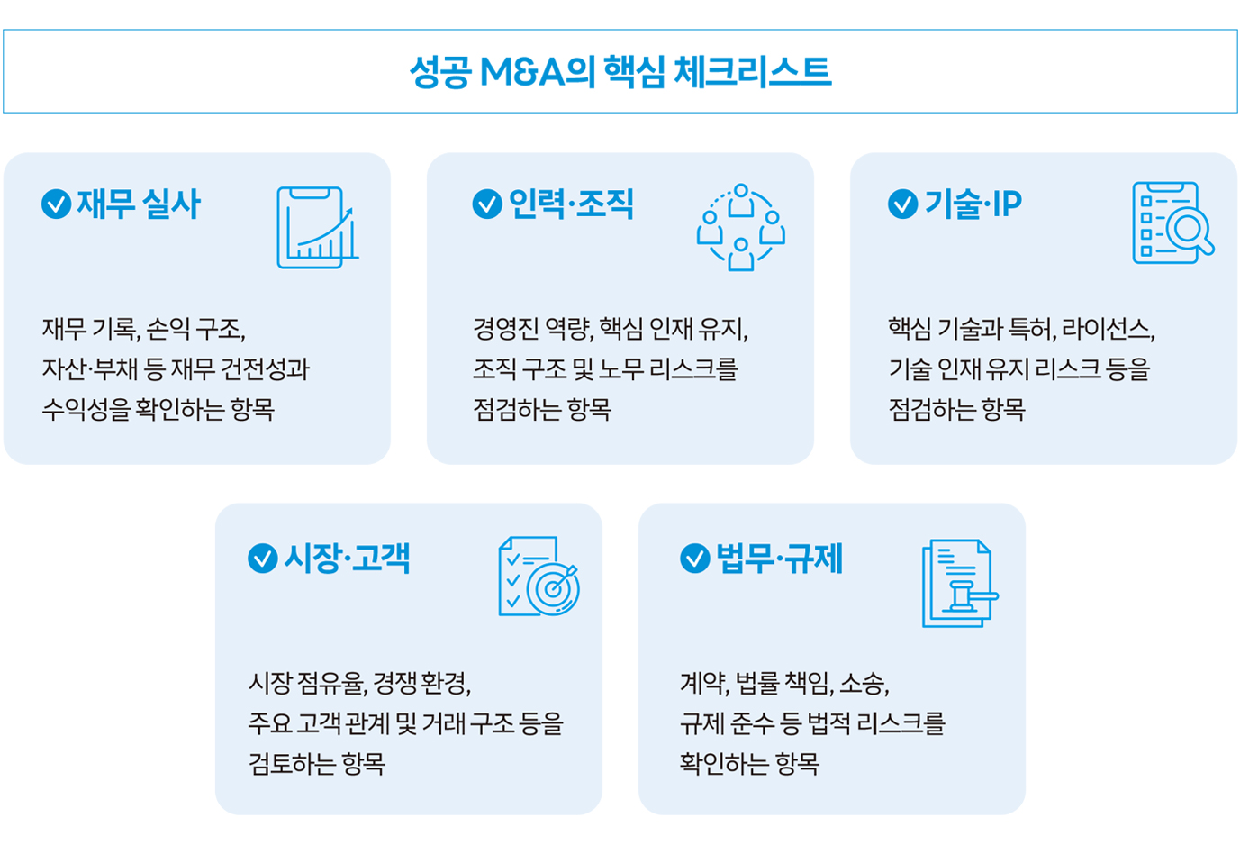 그럼에도 성공한 사례에는 공통된 특징이 있다. 첫째, 자신의 강점과 약점을 정확히 파악하고 있다는 점이다. 둘째, 인수 전에 피인수기업에 대한 철저한 실사를 진행한다는 점이다. 결국 이러한 접근은 ‘지피지기(知彼知己)’의 원칙과 같다. 성공적인 M&A는 우연이 아니라 자신과 상대를 정확히 이해하고 준비한 전략의 결과임을 보여준다.