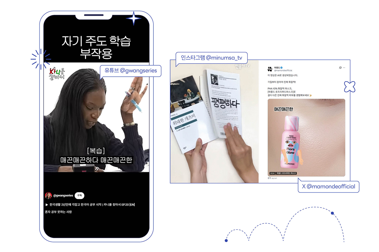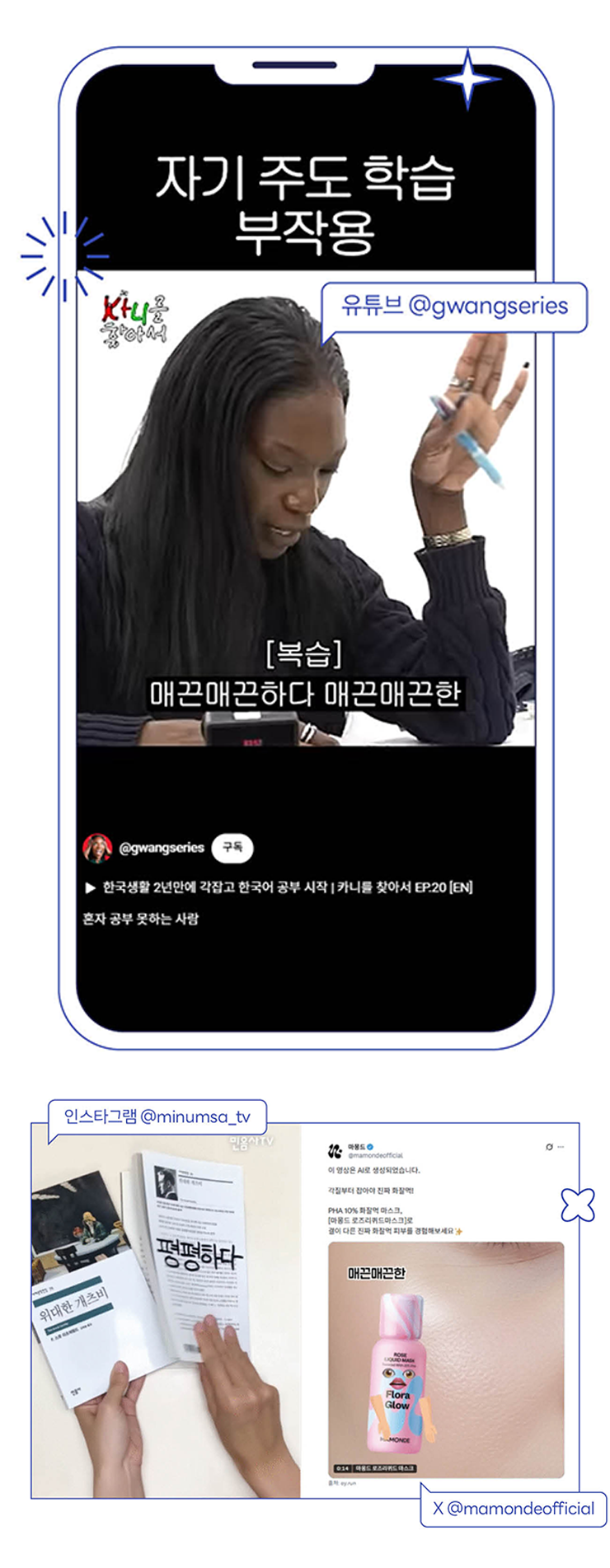브랜드·기업들의 밈 활용 사례(중간, 오른쪽)