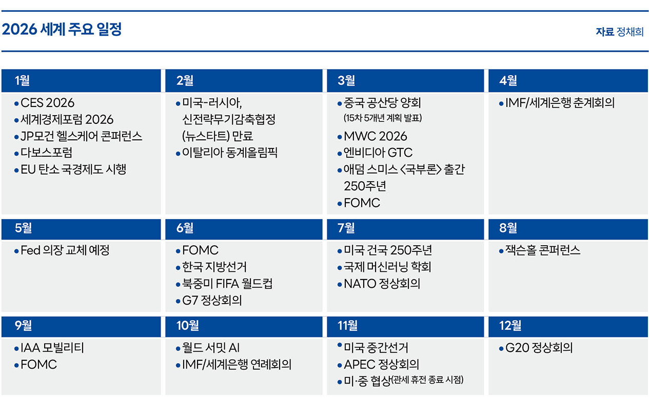 정치 일정도 경제에 영향을 미친다. 한국은 6월 지방선거, 미국은 11월 중간선거를 앞두고 있다. 표심을 의식한 각국의 재정·산업정책은 자본시장이 선호하는 방향으로 쏠릴 가능성이 높고 이는 글로벌 증시 흐름에 직접적인 영향을 미칠 전망이다.