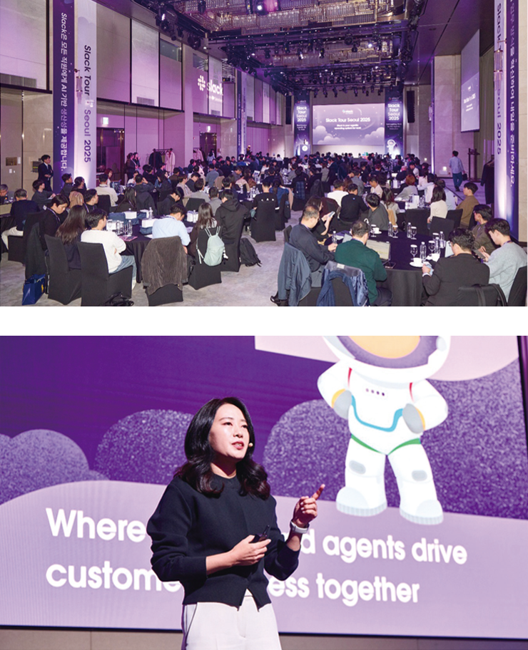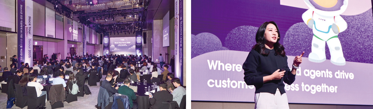 ‘슬랙 투어 서울 2025’에서 세일즈포스코리아는 슬랙이 AI와 인간의 원활한 협업을 지원하는 ‘에이전틱 OS(Agentic OS)’로서의 역할을 강화해 나갈 것이라고 발표했다.(ⓒ세일즈포스)