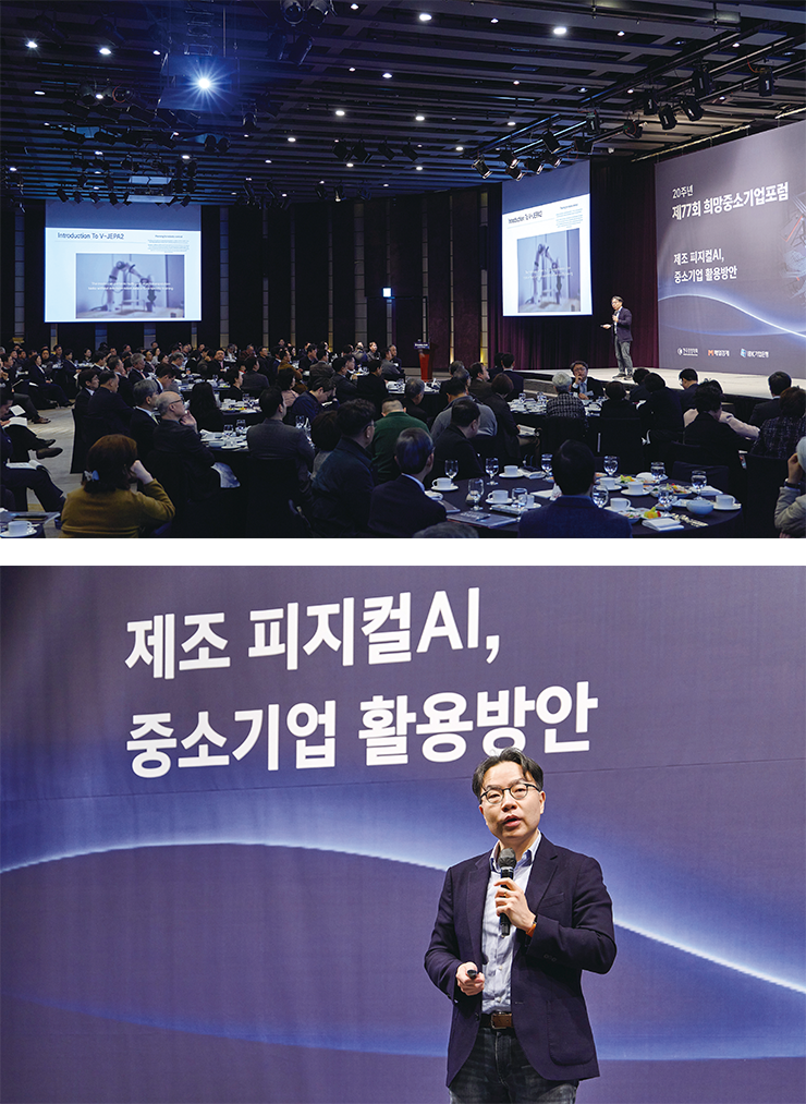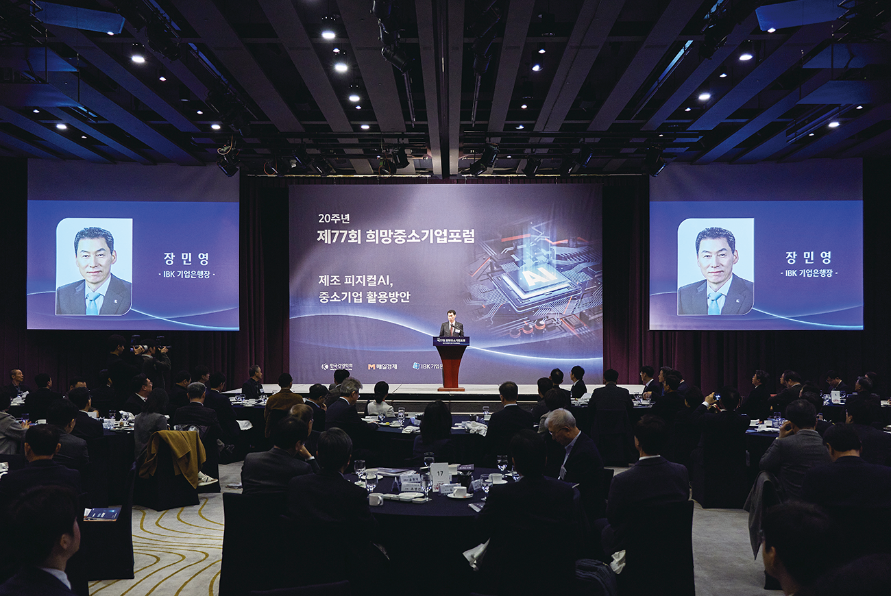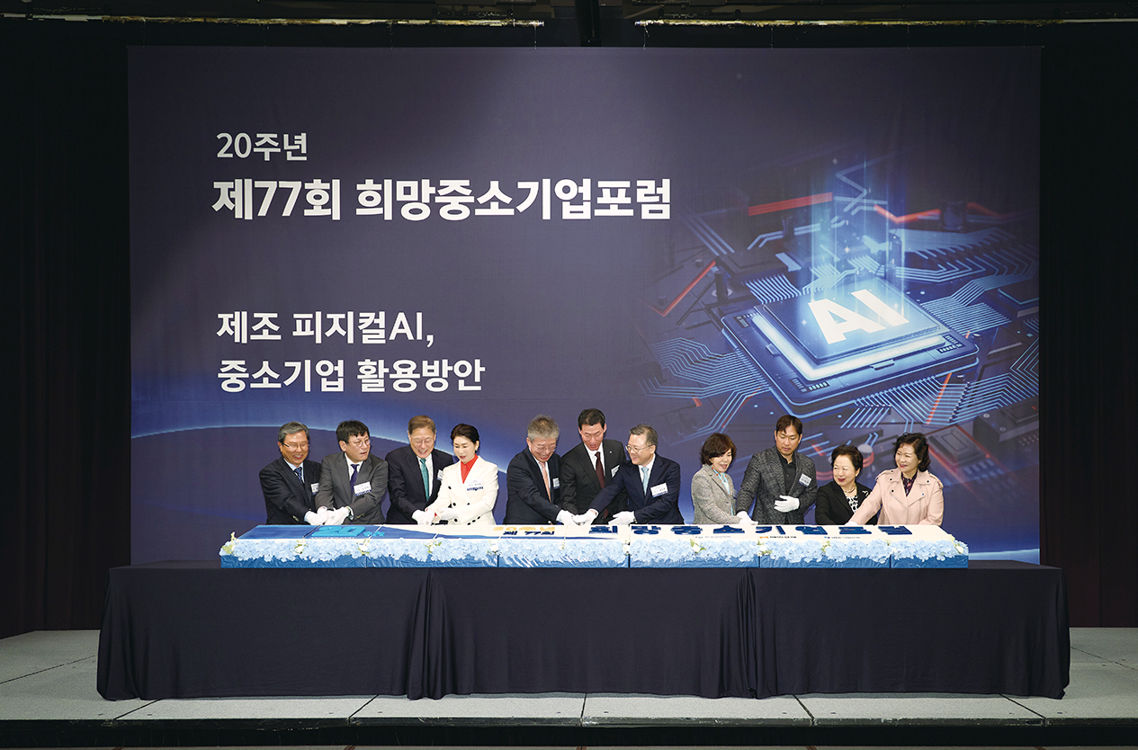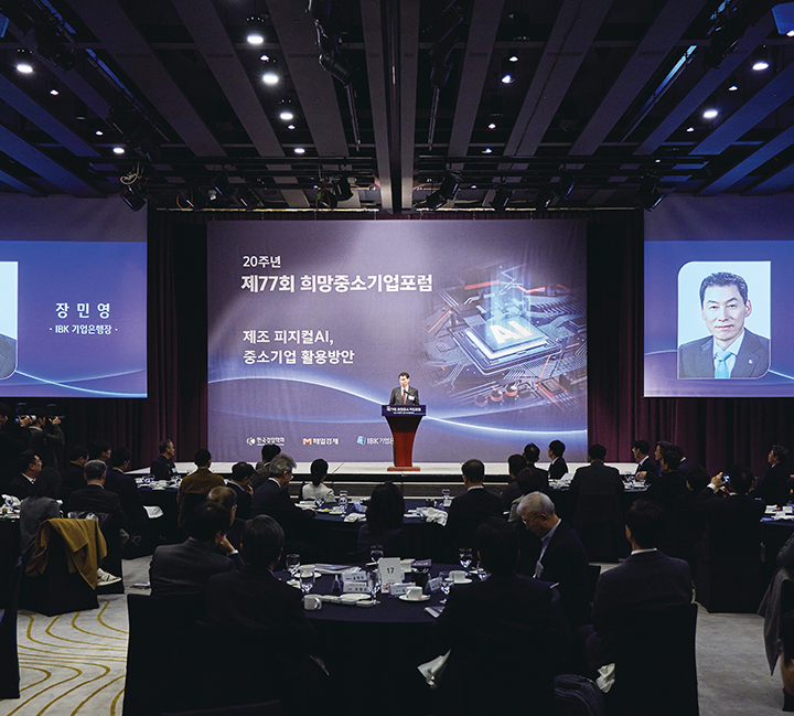2006년 출범한 희망중소기업포럼이 올해로 20주년을 맞았다. 3월 5일 서울 웨스틴 조선 호텔에서 열린 제77회 포럼은 ‘제조 피지컬 AI, 중소기업 활용 방안’을 주제로 개최됐다. 매일경제신문과 IBK기업은행, 한국경영학회가 공동 주최한 이번 행사에는 중소기업 CEO와 학계, 정책 관계자 등 250여 명이 참석해 중소기업의 AI 전환과 제조 혁신 전략을 논의했다.