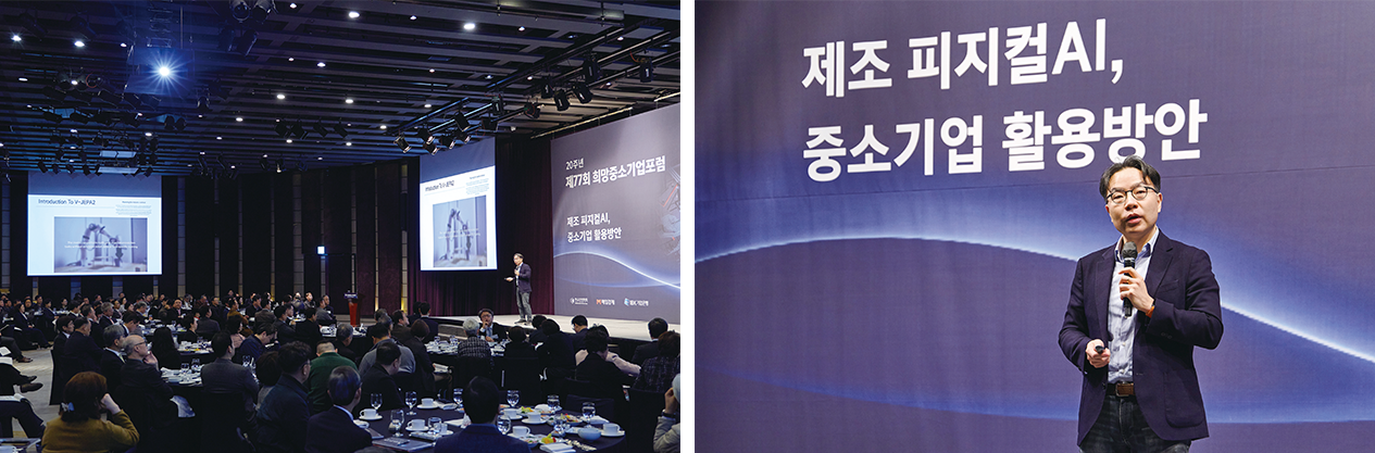 이날 포럼의 핵심 강연은 장영재 KAIST 산업·시스템공학과 교수가 맡았다. 그는 ‘제조 피지컬 AI, 중소기업 활용 방안’을 주제로 한 강연에서 중소기업이 AI를 도입할 때 물류 자동화부터 시작하는 것이 가장 현실적인 접근이라고 강조했다.